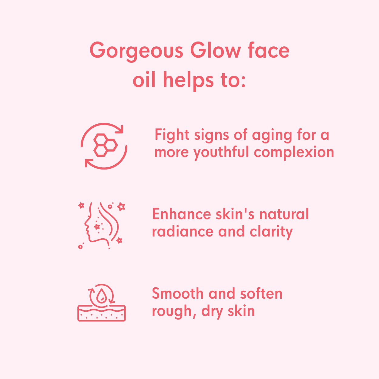 Gorgeous Glow Face Oil is made with a blend of high-quality, natural and organic ingredients that are specifically chosen for their skin-beneficial properties.