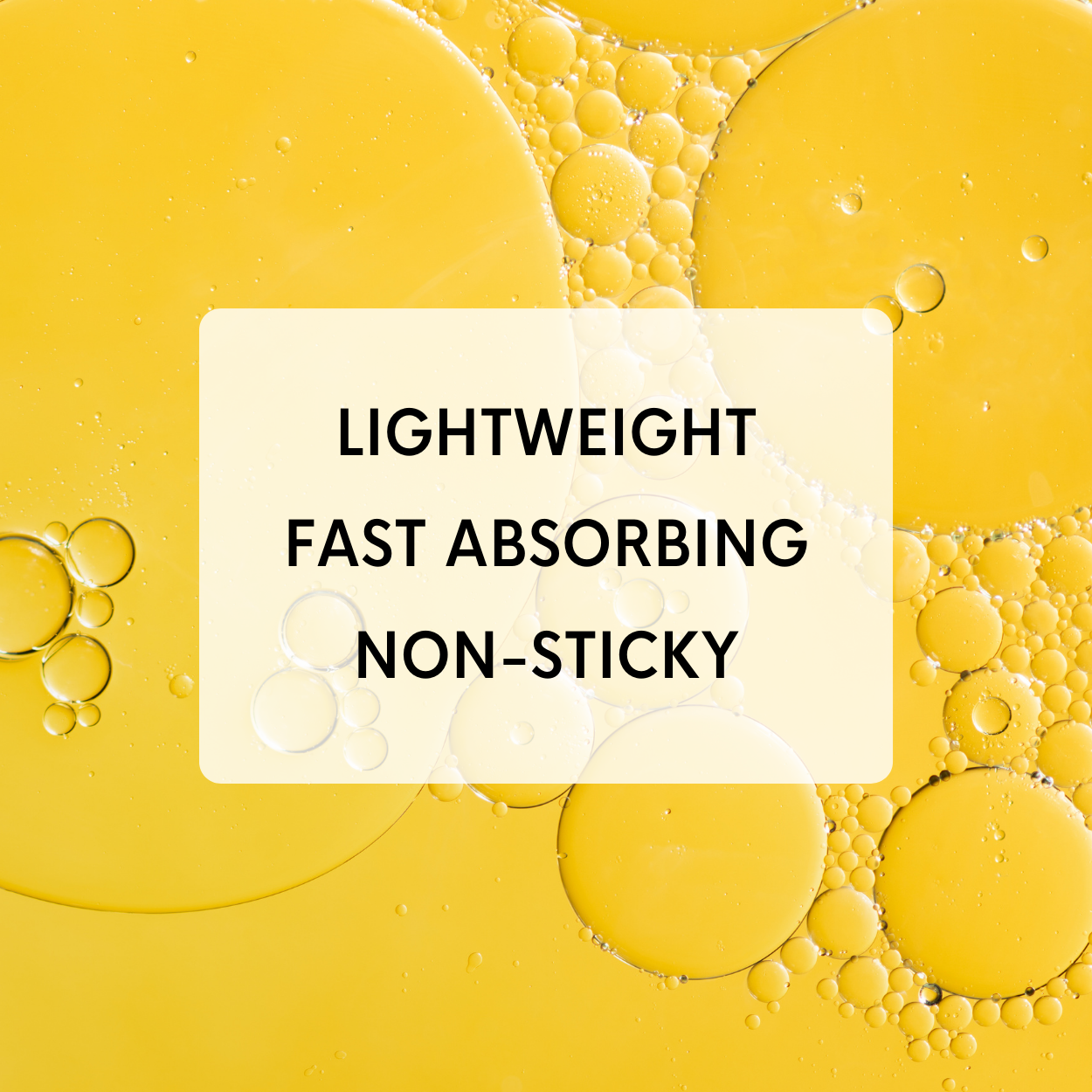 Gorgeous Glow Facial Oil is formulated with lightweight oils, such as VITIS VINIFERA Seed Oil, Jojoba Seed Oil, and Camellia Seed Oil, which are easily absorbed by the skin and will not leave a greasy residue.
